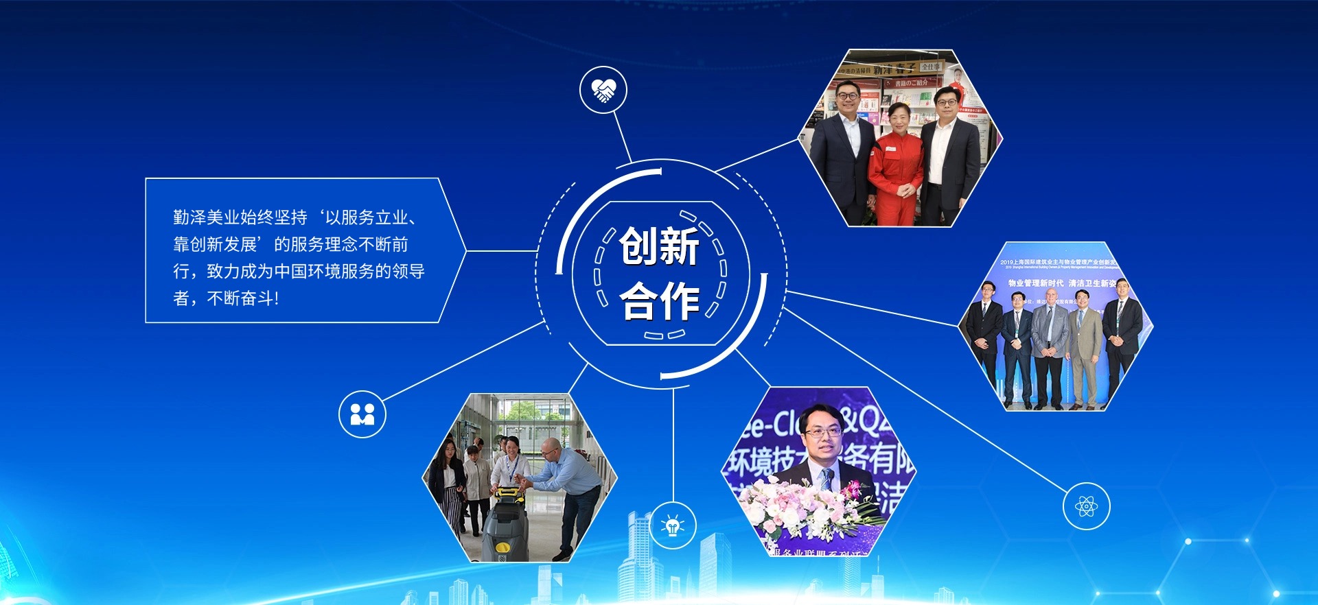 公司致力于把“勤澤美業(yè)”培育成眾口皆碑、令人尊敬、具有長期價值的服務(wù)領(lǐng)袖品牌。業(yè)務(wù)范圍涵蓋環(huán)境清潔和綜合設(shè)施管理服務(wù),公司具備環(huán)衛(wèi)、保潔、石材等多個行業(yè)一級資質(zhì),致力成為中國環(huán)境服務(wù)行業(yè)的領(lǐng)導者。